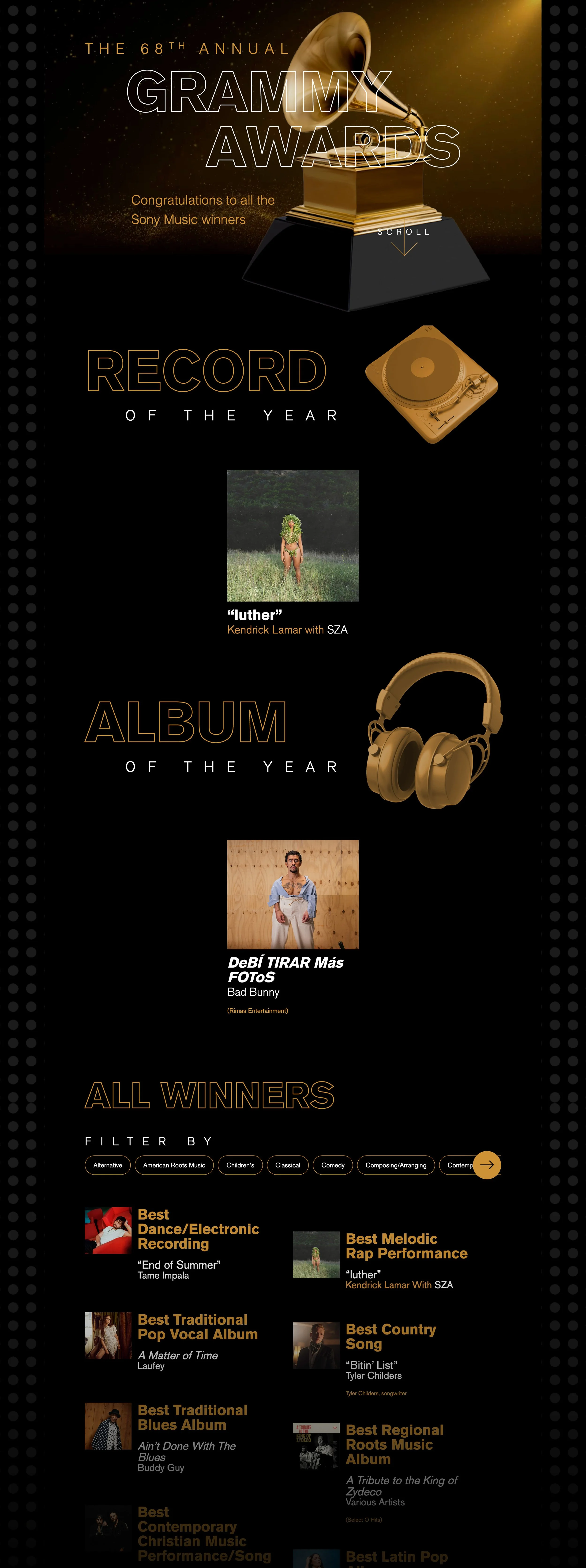 Historically, our presence on GRAMMY night centered on a single winners graphic published at the end of the televised ceremony. While this ensured equal representation, it limited participation in the live cultural conversation. To increase real-time visibility, I introduced a reshare strategy that amplified individual winner content from our labels, allowing us to remain active throughout the evening while maintaining corporate neutrality. In parallel, I redesigned the annual winners graphic to elevate its visual impact and better reflect the scale of the moment.